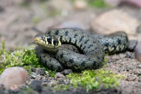 La biscia va in letargo da ottobre a marzo, infilandosi nei buchi del terreno.