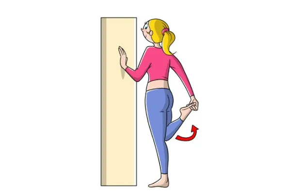 (www.melarossa.it) Stretching per allungare il quadricipite: Appoggia la mano sinistra al muro e prendi la caviglia con la mano destra. Porta il busto in avanti e spingi con dolcezza il tallone verso il gluteo. Senti il muscolo tirare? Vuol dire che si sta allungando.Ripetizioni: tieni la posizione per 20 secondi e poi cambia gamba. Illustrazione: Marcello Carriero