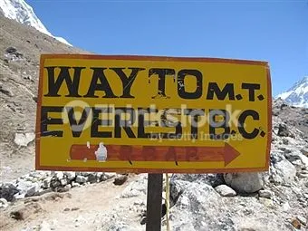 Cartello lungo il percorso che porta all'Everest, nell'Himalaya, Nepal.