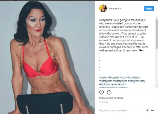 Nel 2005 ha trovato il modo per reagire. Aveva postato un post, in una pagina di tumblr, che incoraggiava le donne ad accettare i propri difetti, ed una sua foto ha ricevuto 25000 "Mi piace". Questo fatto le ha dato molta fiducia. Foto Instagram @sarageurts
