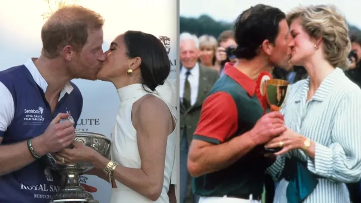 Ci sono immagini fotografiche capaci di emozionare tanto che prima o poi qualcuno cerca di replicarne le circostanze. È accaduto così con l’iconico scatto che nel 1985, a Windsor, immortalò Lady D che bacia il marito Carlo, futuro re, dopo avergli consegnato la coppa al termine di un torneo di polo. Trentanove anni dopo, si replica in Florida con il figlio di Carlo, Harry, premiato e poi baciato dalla moglie Meghan Markle durante la assegnazione dei premi del Royal Salute Polo Challange.