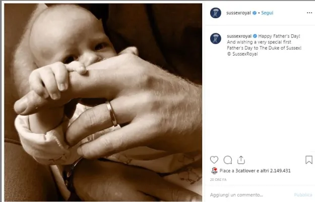 Ci sono adesso però le immagini, diffuse ancora una volta attraverso gli account social dei reali: un ritratto di Archie Harrison Mountbatten-Windsor -nato lo scorso 6 maggio- che dorme pacifico nelle braccia dei suoi genitori, nel giardino delle rose a Windsor. E la 'foto di famiglia', scattata dopo la cerimonia nella Green Drawing Room del castello.