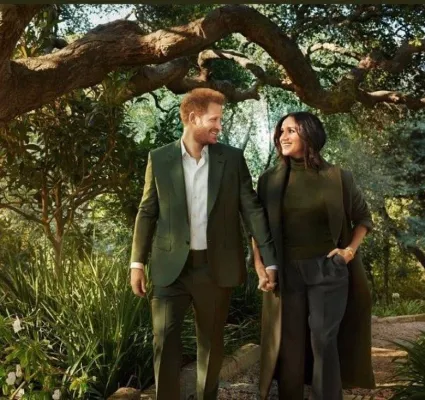 «È la prima volta che la coppia posa per la copertina di un magazine», ha scritto su Instagram l’autore degli scatti, Pari Dukovic, mostrando tre diversi ritratti. Nel primo Meghan è vestita di bianco e Harry di nero. Nel secondo sono vestiti di verde e sono immortalati a Montecito, dove vivono.