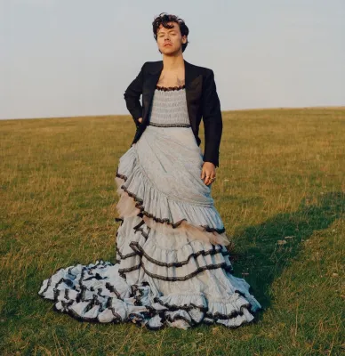 L'ex One Direction non è d'altra il primo uomo a comparire sulla copertina di Vogue (è successo altre nove volte nei 127 anni di storia del magazine), ma è il primo che non è fotografato in compagnia di una donna: nel luglio 2017 la rivista mise in copertina un altro membro della boy-band, Zayn Malik, accanto alla compagna di allora Gigi Hadid per mostrare "una nuova generazione che abbraccia la fluidità di genere": entrambi indossavano abiti Gucci intercambiabili, ma la scelta di una coppia etero per illustrare il concetto "gender fluid" fu criticata e la rivista fu costretta a pubblicare un mezzo mea culpa.