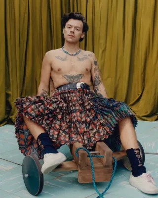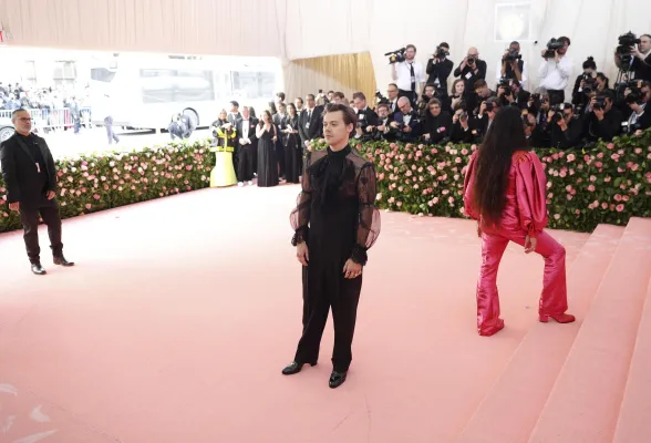 Harry, che ha 32,6 milioni di seguaci su Instagram, aveva dimostrato di essere un personaggio già dipingendosi le unghie color lavanda e abbinandole a collettino di pizzo e scarpe Mary Jane per il red carpet dei Brit Awards 2020. L'anno prima, al gala del Met di cui era "padrino" (la mostra era appropriatamente "Notes on Camp"), si era presentato con una blusa di organza trasparente nera con jabot di pizzo accessoriata da un orecchino di perle a pendente.