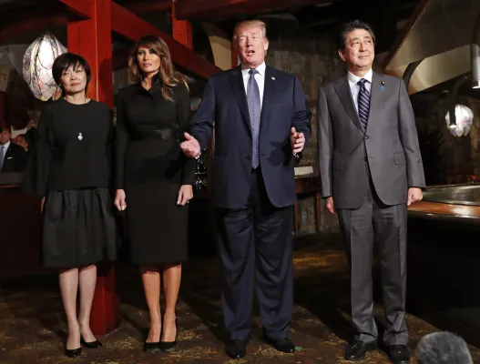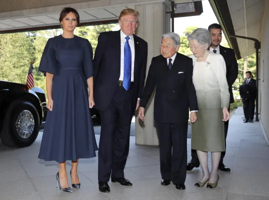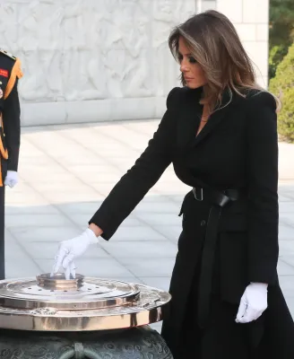 In occasione della visita della coppia presidenziale statunitense in Asia, a Tokyo, invitata al banchetto del primo ministro giapponese Shinzo Abe, si è presentata indossando uno smoking.