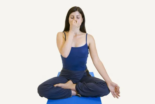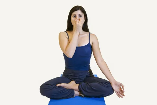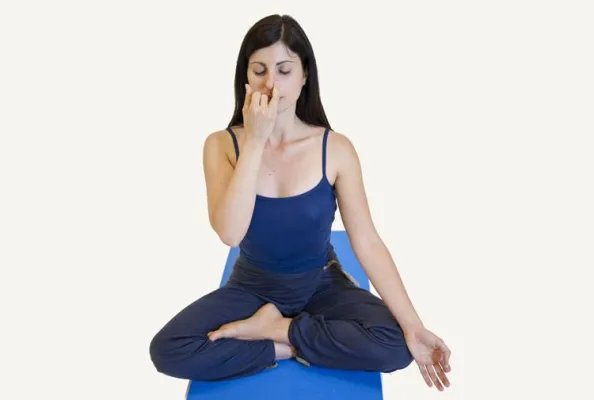 (www.melarossa.it) Respirazione Nadi Sodhana (narici alternate), posizione 4: Ora libera la narice destra chiudendo la sinistra ed espira. Dopo inspira, sempre dalla narice destra, riempiendo i polmoni d'aria. Per iniziare, esegui la respirazione per 4-5 minuti, poi aumenta il tempo gradualmente. Copyright: Shutterstock.com