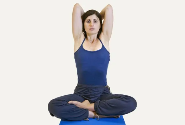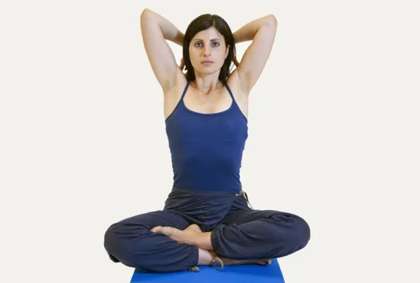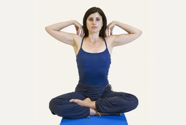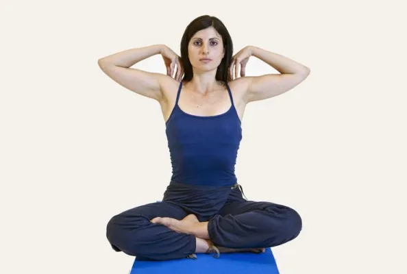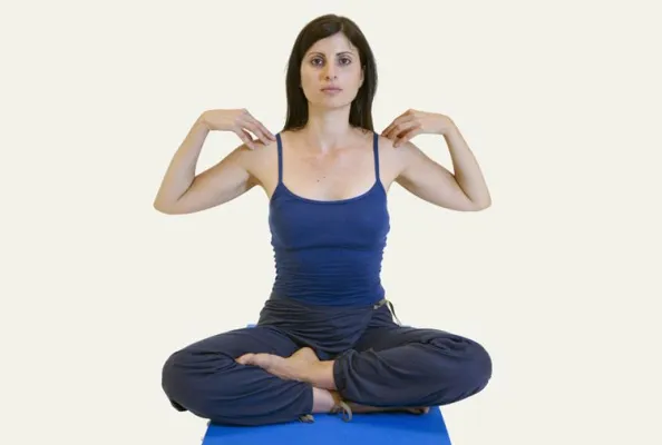 (www.melarossa.it) Respirazione yogica completa, mani su spalle: