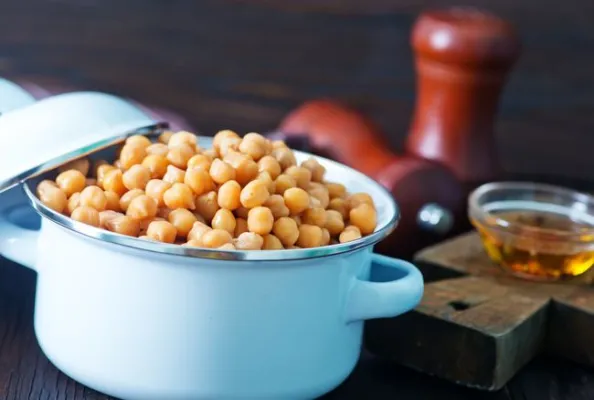 (www.melarossa.it) Ceci: Sono tra i legumi da preferire per il discreto indice chimico delle loro proteine, per il discreto contenuto di acidi grassi polinsaturi e per le loro molteplici proprietà nutrizionali e terapeutiche: sono più ricchi di lipidi rispetto agli altri legumi e sono pertanto più equilibrati nella ripartizione dei macronutrienti, ma anche più ricchi di calorie. Rappresetano anche un'ottima fonte di fibre, vitamine A, C e saponine (sostanze che aiutano a ridurre i livelli ematici di trigliceridi e colesterolo). Copyright: Shutterstock.com / Gayvoronskaya_yana