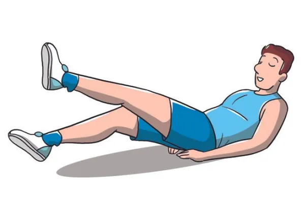 Dalla posizione classica dei crunch, appoggia la gamba sinistra sulla destra, che rimane appoggiata al terreno. Mentre sollevi il busto, vai a toccare con il gomito destro il ginocchio sinistro. Ripeti l'esercizio per 15 volte e poi cambia lato, quindi gamba destra appoggiata sulla sinistra e gomito sinistro che va a toccare il ginocchio destro. Ripeti l'esercizio per 15 volte. Illustrazione: Marcello Carriero
