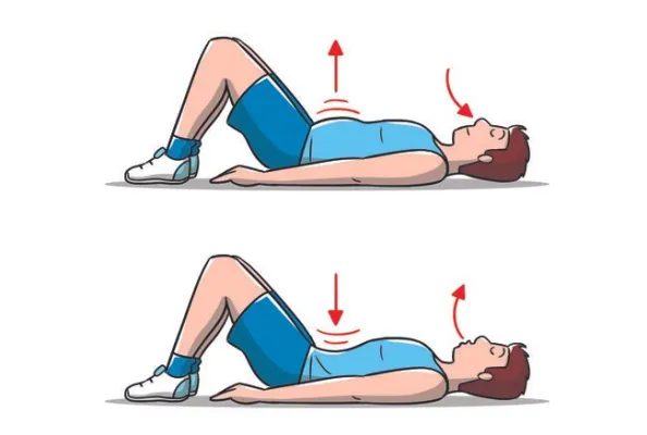 In questo esercizio sono soprattutto gli addominali bassi ad essere coinvolti. Sdraiato supino a terra, con la testa e le gambe leggermente sollevate, muovi in alto e in basso gli arti inferiori alternatamente, mantenendo le braccia lungo i fianchi e prestando attenzione a non sollevare la zona lombare. Fai 30 ripetizioni. Illustrazione: Marcello Carriero - Clicca e scopri gli altri esercizi per far lavorare il retto addominale