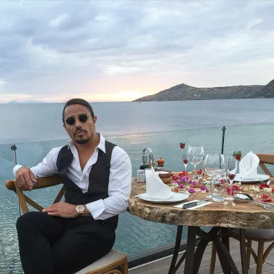 Di umili origini Nusret ha dovuto lasciare gli studi per il lavoro, dopo aver fatto il macellaio ha aperto il primo ristorante e ora vanta più 400 di dipendenti, lavora ben 18 ore al giorno e non si concede mai un a vacanza. Foto Instagram @nusr_et