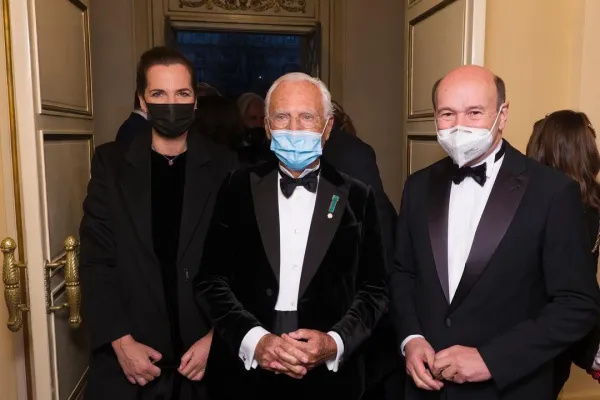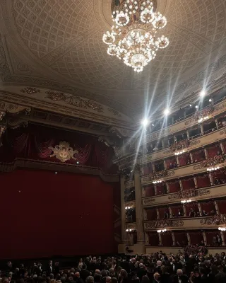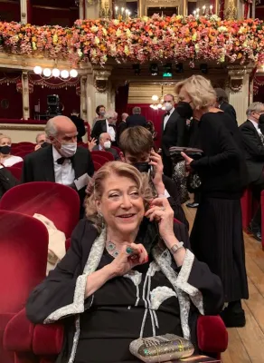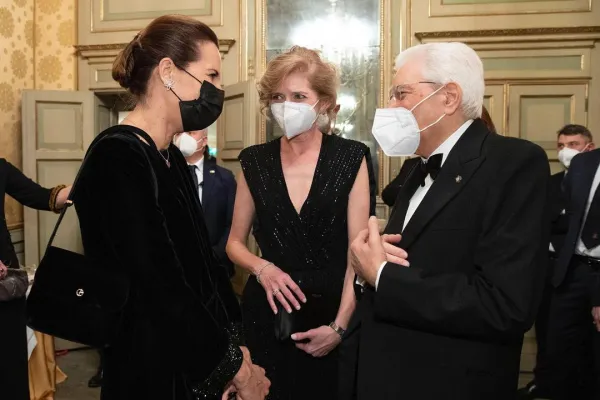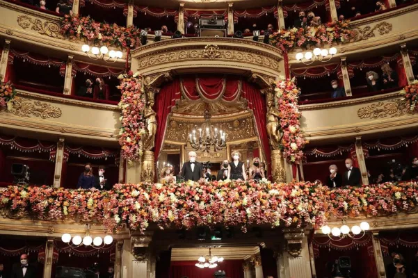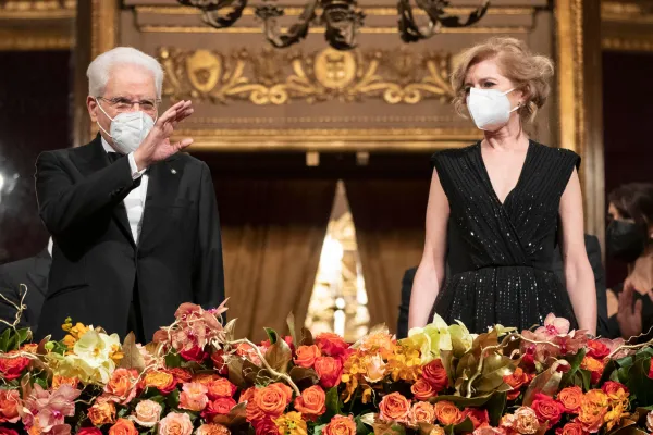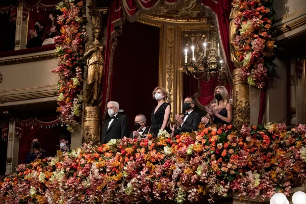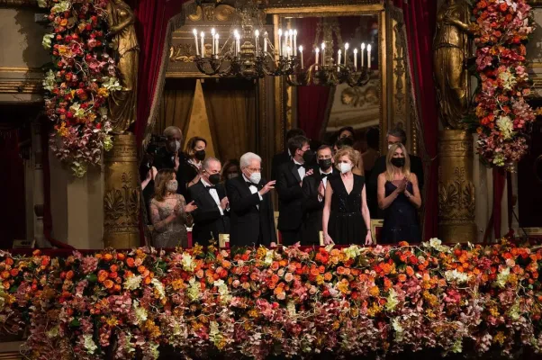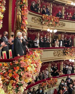 Lo stesso Re Giorgio è invece arrivato a teatro accompagnato dalle nipoti Roberta e Silvana, indossando uno smoking di velluto nero e la medaglia di cavaliere di gran croce appuntata al petto. Nutrita la pattuglia delle invitate che oltre alle mascherine sul viso di strass e paillettes hanno sfoggiato gioielli da Mille e una notte. In poche in questo 7 dicembre hanno preferito orientarsi su rosso Valentino, tocchi di oro, e pennellate di bianco latte mentre dai palchi è spuntato anche qualche kimono, paillettes, piume e cristalli. Ha scelto il nero Laura Mattarella, la figlia del presidente, vestito Armani.