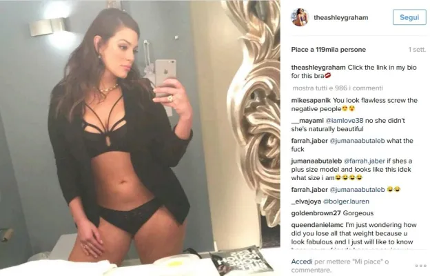 Ashley Graham, ha iniziato la carriera da giovanissima, era stata scritturata dalla agenzia I&I che l'aveva notata mentre faceva shopping in un centro commerciale. Da lì la sua carriera è stata un costante crescendo.