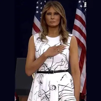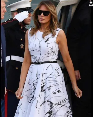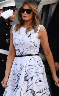 La First Lady Melania Trump sfoggia per le celebrazioni del 4 luglio a Mount Rushmore, in South Dakota, un abito di Alexander McQueen da 2.485 dollari. Un vestito bianco con dei disegni, molti simili a semplici schizzi, che suscita ilarità sulla rete. "Trump si annoiava sull'Air Force One e ha disegnato sul vestito bianco di Melania con un pennarello", è uno dei tweet. "Melania indossava un vestito bianco per la serata prima che Trump prendesse un pennarello e disegnasse", si legge in un altro cinguettio. "Trump ha cercato di disegnare il percorso di un uragano sul vestito di Melania", è un altro ancora.