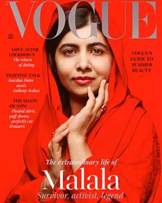 Malala Yousafzai, l'attivista pachistana che ancora adolescente fu bersaglio dei talebani per il suo impegno nella campagna a favore dell'istruzione della ragazze, compare sulla copertina di Vogue nella sua edizione britannica di luglio. La sua è una storia di coraggio e determinazione che le ha fatto ricevere il Premio Nobel per la Pace a 17 anni, e oggi la porta come esempio per le giovani di ogni nazione.