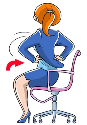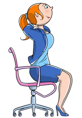 (www.melarossa.it) ESERCIZIO PER LA SCHIENA: Seduto, busto eretto, mani dietro la nuca, apri i gomiti cercando di avvicinare il più possibile le scapole. Rimani in posizione per alcuni secondi e ripeti l'esercizio per 4 volte. Illustrazione: Marcello Carriero