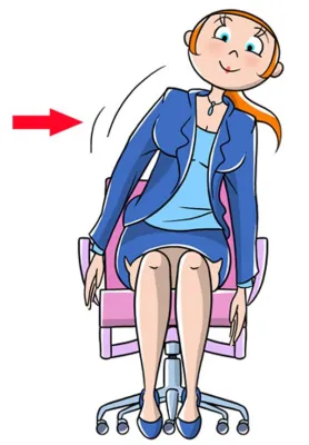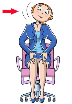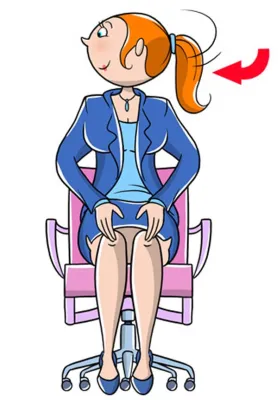 (www.melarossa.it) ESERCIZIO PER IL COLLO: Seduto, schiena dritta e ben poggiata allo schienale, tieni le braccia e le spalle rilassate e le mani sulle ginocchia. Inspira e, espirando, inclina lentamente la testa prima a destra e poi a sinistra. Ripeti l'esercizio per 10 volte. Illustrazione: Marcello Carriero