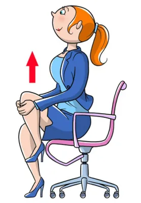 (www.melarossa.it) ESERCIZIO PER L'ADDOME: Seduto, busto dritto e ben poggiato sullo schienale della sedia, piedi a terra. Tieniti con le mani ai bordi laterali della seduta, inspira e poi, espirando, solleva le gambe e avvicinale il più possibile al torace. Ripeti l'esercizio per 10 volte inspirando ed espirando. Esegui questa sequenza per 2 volte. Illustrazione: Marcello Carriero