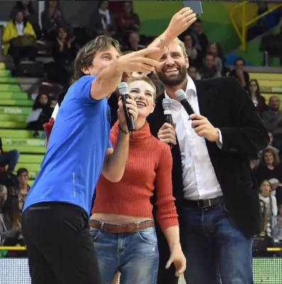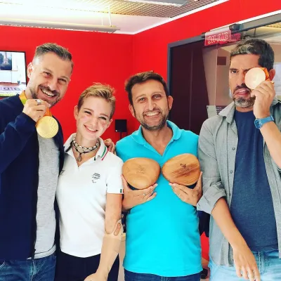 La campionessa olimpica Bebe Vio continua a mostrare una grande ironia, oltre che una forza d'animo fuori dal comune. Questa volta la giovane veneziana vincitrice a Rio della medaglia d'oro in scherma, ha usato come bastone del selfie il suo braccio stupendo anche l'ex campione di nuoto Massimiliano Rosolino con cui si è fatta fotografare (da Instagram)