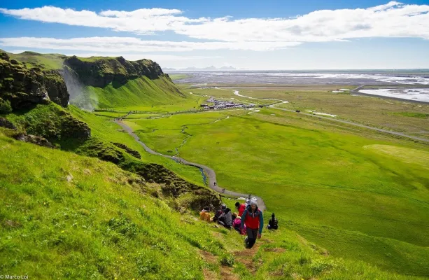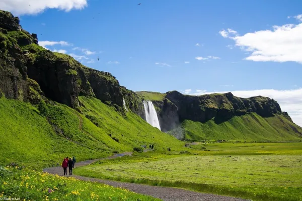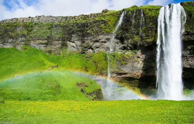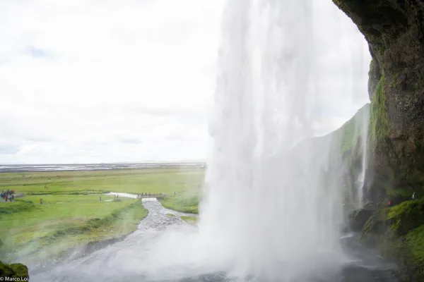 Cascata Seljalandsfoss, situata nella parte sud occidentale dell'isola. La cascata è originata dal ghiaggiaio Eyjafjallajökull ed è alta circa 65 mt.