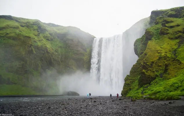 Skógafoss è situata nel sud dell'isola presso la località Skóga, è originata dal fiume Skógaá, proveniente dal ghiacciaio Eyjafjallajökull su un salto che in altri tempi era una scogliera.