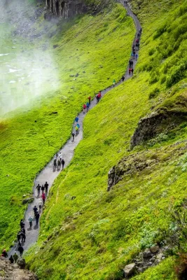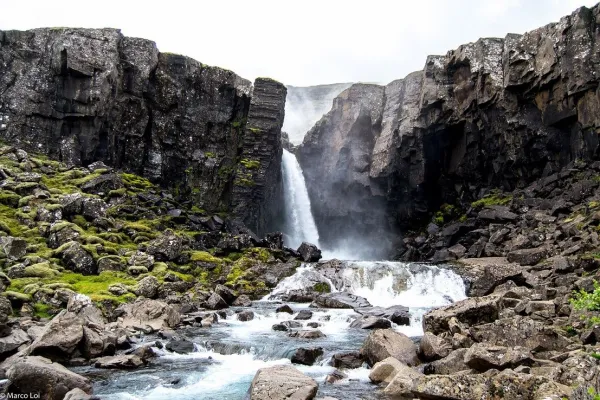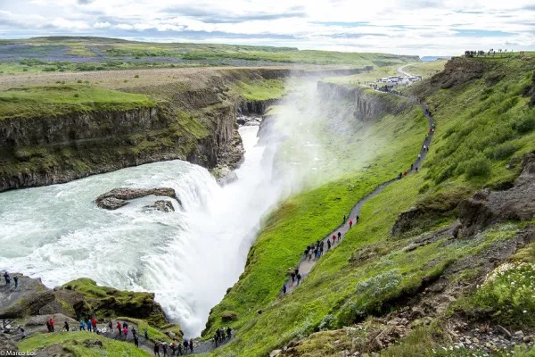 Una delle cascate più belle d'Islanda è la Gullfoss (che significa "cascata d'oro") nel "Circolo d'Oro": si getta con un doppio salto nel canyon sottostante e nelle belle giornate di sole regala effetti di luce fantastici.