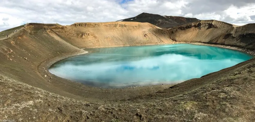 Cratere Viti, zona Krafla. Questa è una caldera di circa 10 km e con una fenditura lunga 90 km situata nel nord dell'Islanda nella regione di Myvatn.