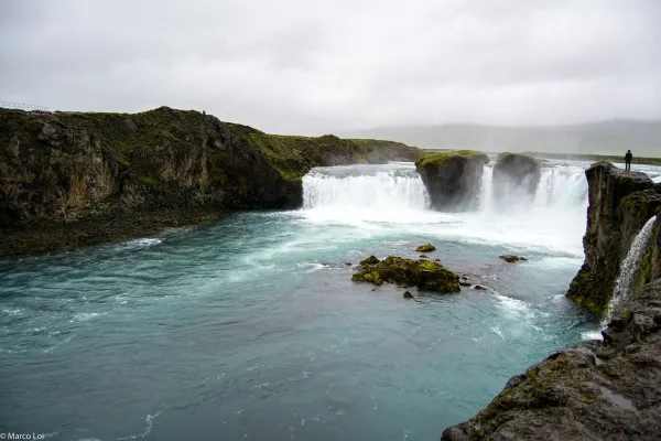 Cascata di Godafoss, che in islandese il nome significa "Cascata degli Dei". Godafoss è una delle cascate più belle e famose d'Islanda, e ha il grande pregio di essere facilmente accessibile dalla strada Hringvegur.