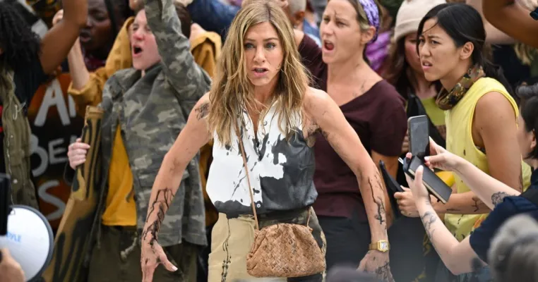 La faccia scioccata e arrabbiata di Jennifer Aniston sta rimbalzando da giorni su tutti i social. L'attrice 54enne è rimasta vittima di un gavettone di vernice nera. Ma tranquilli, si tratta solo di una scena della quarta stagione di The Morning Show. Ma anche nella finzione come nella realtà è presente a una manifestazione per protestare, come ha fatto di recente con le sue prese di posizione contro il candidato vicepresidente J.D. Vance, scelto da Trump, che ha gentilmente definito le politiche del partito democratico degli Stati Uniti un gruppo di gattare senza figli che sono infelici per la propria vita e per le scelte che hanno fatto e quindi vogliono rendere infelice anche il resto del Paese.