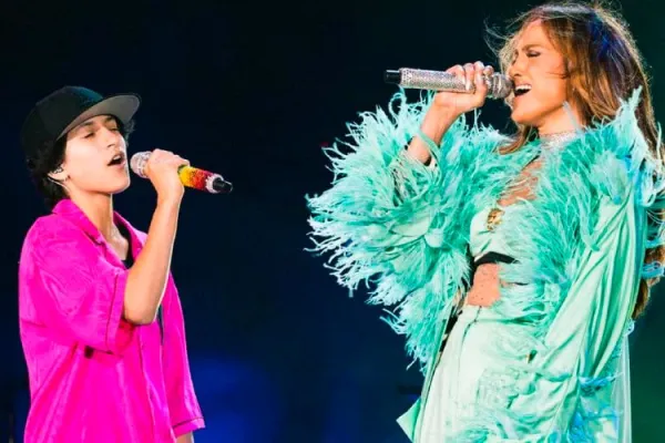 "Chiedo sempre a 'loro' di cantare con me ma non lo fanno mai quindi questa è un'occasione molto speciale. Sono molto, molto occupati. Prenotati. E costosi. Mi costano quando escono. Ma valgono ogni singolo centesimo perché sono il mio partner di duetto preferito di tutti i tempi" ha detto la popstar 52enne portoricana introducendo la figlia che ha cantato con un microfono arcobaleno.