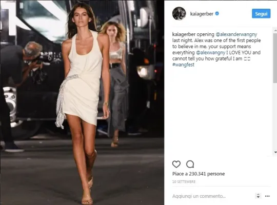 Già in sfilata a Milano, la bella Kaia aveva stupito tutti per la sua bravura ma anche per l'eccessiva magrezza che molti follower avevano denunciato sui social. Colpa dell'eccessivo stress che la settimana della moda porta inevitabilmente con sè oppure di cattive abitudini alimentari? Foto Instagram