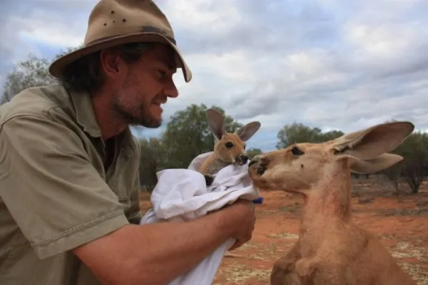 Chirs Barnes, soprannominato ?Kangaroo Dundee?, è un ex guida turistica e ha fatto della sua passione il proprio lavoro. Dal 2009 assiste i piccoli canguri orfani che popolano il Kangaroo Sanctuary, il centro di assistenza da lui fondato nel centro dell'Australia, ad Alice Springs. Il santuario si estende su una superficie di oltre 90 ettari e ospita una trentina di piccoli. Tra gli ospiti impossibile non citare Roger, il canguro palestrato diventato famoso sui social network.