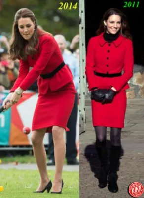 Lo stesso tailleur rosso Luisa Spagnoli, indossato per una visita alla St. Andrew e in occasione del viaggio dello scorso anno in Australia e Nuova Zelanda.