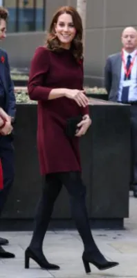... una semplice tunica bordeaux di Goat Fashion dalla linea leggermente a trapezio che non sottolineava ma neanche camuffava il pancino della duchessa, che ha annunciato pochi mesi fa di essere incinta.