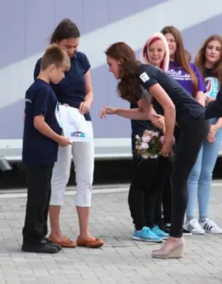 PORTSMOUTH - Kate Middleton ha assistito all'America's Cup World Series races in compagnia del marito, il principe William. A 34 anni la duchessa di Cambridge ha sfoggiato un fisico snello e asciutto, nonostante le due gravidanze di George, 3 anni, e Charlotte, 1. La coppia ha incontrato il giovane Zak Kay, 10 anni, uno studente della St Paul's Catholic Primary School che ha vinto un concorso per progettare il trofeo per l'evento. Il ragazzo ha chiesto al principe William che cosa avesse ricevuto il piccolo George per il suo terzo compleanno, festeggiato lo scorso 22 luglio.scherzando, ha risposto così: "Non te lo dico. Ha avuto troppe cose. Sta diventando un po' troppo viziato. Ma non ha ancora una barca".