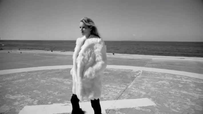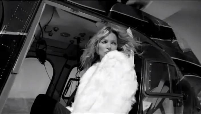 Nelle inquadrature della clip in bianco e nero Kate scopre il seno nudo sotto una pelliccia bianca.