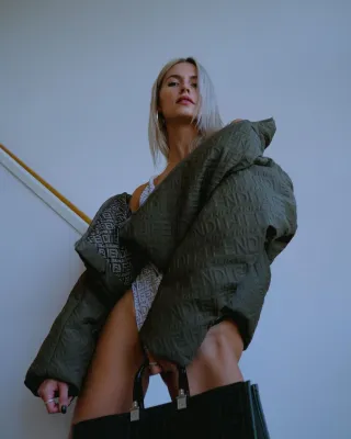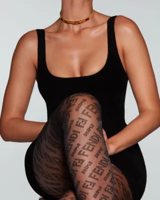 Della collezione di abbigliamento e intimo modellante #FendixSkims si parlava da tempo negli ambienti della moda, soprattutto dopo un indizio estivo che ritraeva Kim Jones e Kim Kardashian (che di Skims è la fondatrice) insieme a Donatella Versace. Oltre all’intimo modellante e i collant (per cui è famoso il marchio Skims di Kim Kardashian, inclusivo sia in termini di taglie sia in tonalità di incarnato disponibili), sono stati inseriti vestiti a tubino ultra aderenti, e anche leggings, top, giacche bomber.