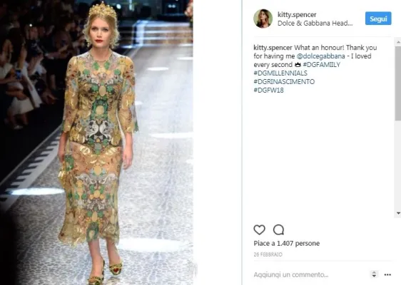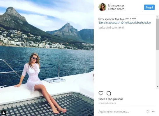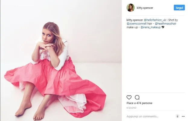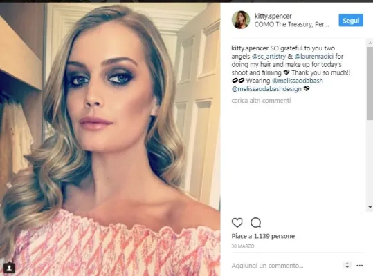 Lady Kitty Spencer, 26 anni, nipote di lady Diana, è la protagonista assoluta dell'alta società londinese. E' nota anche per la sua storia d'amore con il magnate Niccolò Barattieri di San Pietro, di 20 anni più vecchio già papà di tre figli che di recente l'avrebbe lasciata. Come riporta il sito "Io donna", lei avrebbe voluto sposarsi e diventare mamma, ma lui senza esitare ha fatto i bagagli e lasciato la loro lussuosa casa a Chelsea, nella Londra benestante. Niccolò senza far passare troppo tempo si sarebbe già consolato con l?attrice Liz Hurley. Foto Instagram