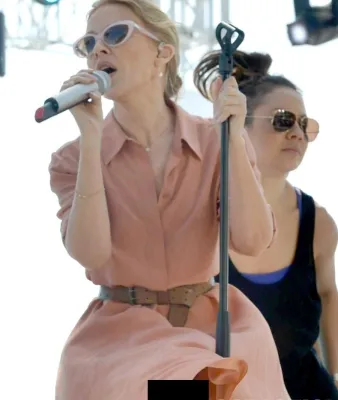 La pop star australiana presenta il singolo "Into the Blue" e posta su "Instagram" una foto molto sexy. "Kiss Me Once" segna un deciso ritorno al dance floor dopo "Abbey Road Session".