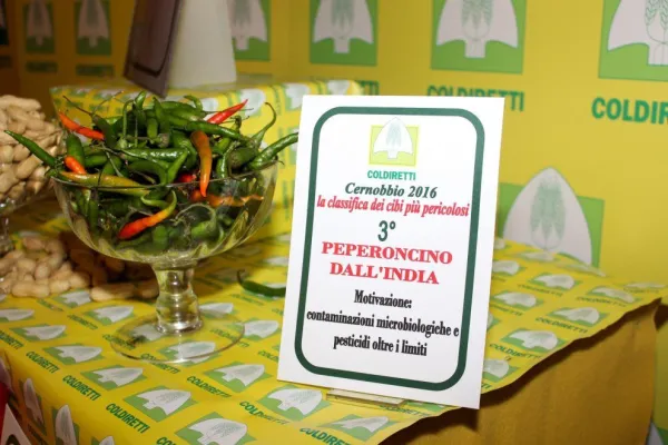 La medaglia di bronzo è per il peperoncino e le altre spezie dall'India per la presenza di contaminazioni microbiologiche e di residui chimici in eccesso. "Una classifica - osserva Coldiretti - che dovrebbe far riflettere i quasi 35 milioni di italiani, di cui 9,7 milioni regolarmente, che abbinano ingredienti italiani con prodotti provenienti da altri paesi, come ad esempio la curcuma originaria dell'India o le bacche di goji, i fagioli azuchi e lo zenzero che sono in gran parte di provenienza cinese.