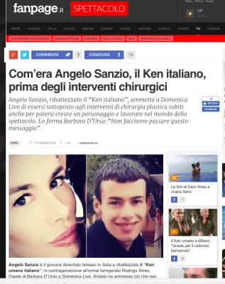 Lo hanno ribattezzato il “Ken italiano”, per distinguerlo dal “Ken umano” Rodrigo Alves, con il quale ha in comune oltre i connotati stravolti dalla chirurgia estetica, ha alcune ospitate nei programmi condotti da Barbara D’Urso (“Pomeriggio Cinque” e Domenica Live”). Lui si chiama Angelo Giuseppe Capparella in arte Angelo Sanzio ed è uno dei concorrenti del Grande Fratello 15. Nato a Civitavecchia, dove vive, 28 anni fa, Angelo ha la maturità scientifica ed è creatore di profumi.