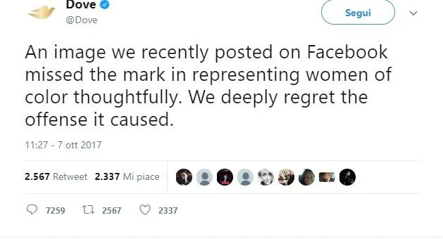 Ora un nuovo spot, diffuso soprattutto attraverso Facebook, ha fatto indignare tanti e ha costretto la Dove a scusarsi.