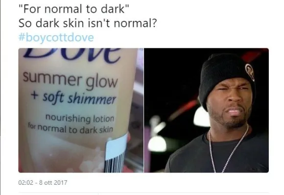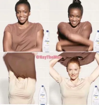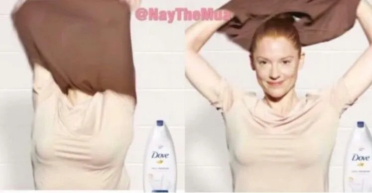 La sequenza di immagini parla chiaro: nella prima, una sorridente ragazza nera con indosso una maglietta marrone. Nella seconda, la ragazza fa per sfilarsi la t-shirt. Nella terza la maglietta marrone, tirata verso l'alto, copre il volto della ragazza, iniziando a rivelare un secondo capo di colore bianco. Alla quarta immagine, sparita la maglietta marrone, compare una ragazza bianca in t-shirt candida. La sequenza si conclude con la ragazza bianca che, una volta spogliatasi del tutto, rivela tratti asiatici. Un finale percepito come un tentativo di depistaggio, una strategia per correggere il tiro e fare pensare a un "sapone per tutti" mitigando lo shock del passaggio dal nero al bianco. Il che non ha comunque evitato l'accusa di veicolare un messaggio razzista che puntualmente si è diffusa fra i commenti al post dell'azienda.
