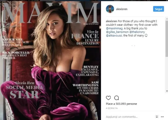 Alexis Ren, la surfista e modella 21 anni ha già conquistato Instagram con il suo strepitoso corpo e le sue pose osè, con 10,9 milioni di follower ha infatti superato la mitica Chiara Ferragni.