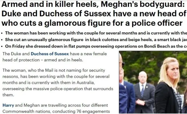 La guardia del corpo ha fatto parlare di sé quando, lo scorso anno, la sua immagine mentre protegge Meghan durante un momento di tensione in un mercato nelle Fiji, per una situazione giudicata 'potenzialmente pericolosa', ha fatto il giro del mondo. L'ispettrice aveva rimpiazzato il sergente Bill Renshaw, il capo della sicurezza di Harry che si è ritirato dopo 30 anni di servizio. Secondo alcune fonti, anche se non ci sono stati 'scontri' con Meghan, è comunque diventato difficile occuparsi della sua protezione personale per il suo desiderio di mostrarsi disponibile in pubblico durante i bagni di folla.