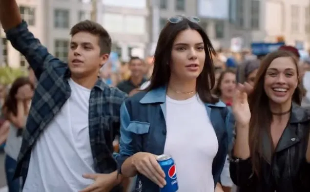 Sulle note di "Lions" di Skip Marley, nipote del cantante Bob Marley, lo spot mostra Kendall Jenner, sorellastra della stella dei reality Kim Kardashian, alle prese con un servizio fotografico. Parallelamente, i dimostranti marciano per le strade con cartelli e slogan come "Partecipate alla conversazione" o "Amore". Invitata da uno dei manifestanti, la modella si unisce alla folla per poi avvicinarsi a un ufficiale di polizia a cui offre una lattina di Pepsi. Quest'ultimo accetta e ne beve un sorso stemperando gli animi e generando l'acclamazione della gente. In molti hanno accusato la multinazionale Usa di essersi appropriata delle istanze del movimento Black Lives Matter, nato per contrastare il razzismo e la violenza contro gli afro-americani, solo per pubblicizzare la propria bevanda. La Pepsi ha ritirato la pubblicità e si è scusata con i consumatori. "Pepsi voleva veicolare un messaggio di unità, pace e comprensione. Chiaramente non ci siamo riusciti e ci scusiamo per questo", ha fatto sapere il colosso Usa attraverso un comunicato stampa