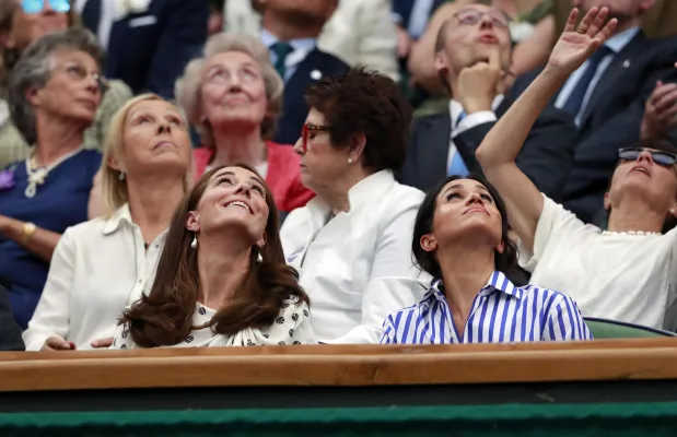 Kate Middleton e Meghan Markle si sono presentate senza consorti sugli spalti del campo centrale di Wimbledon. È stata la prima volta ufficiale delle due cognate insieme e senza i mariti William e Henry.