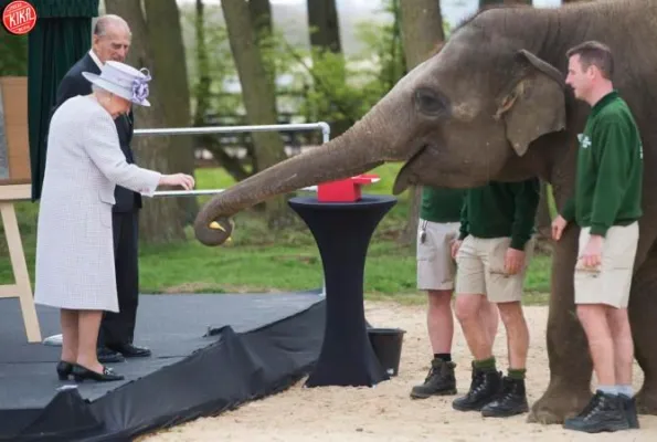 Pensavate di averle viste tutte? Che dire allora di queste foto in arrivo dallo zoo di Whipsnade, a nord di Londra? Un'elefantessa si fa imboccare niente di meno che dalla regina Elisabetta II e dal marito, il principe Filippo, Duca di Edimburgo. Il menu? Un paio di banane. È quello che è accaduto durante il simpatico siparietto tra il pachiderma appunto, e i reali britannici, che hanno preso parte all'inaugurazione della struttura.L'elefantessa si è avvicinata alla Regina e con la proboscide le ha tolto di mano la banana che le stava per porgere. Non ancora sazia, Donna, questo il nome del pachiderma, è andata anche dal Duca di Edimburgo, apparso decisamente meno a suo agio della moglie.