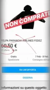 Invece le felpe sono diventate oggetto del desiderio di moltissimi fan del rapper ma anche della moglie Chiara Ferragni e qualcuno che era riuscito ad accaparrarsi l’omaggio in edizione limitata ha pensato di approfittarne. I prezzi raggiunti notevoli come dimostrano gli screenshot pubblicati dallo stesso Fedez nelle sue storie di Instagram. C ‘è una felpa che, dopo 128 offerte, vola a quota 12.800 euro, un’altra invece ha sei offerte e si trova a 3100 euro.